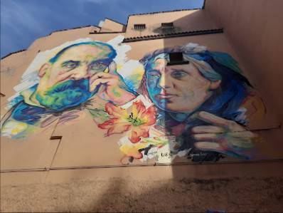 Un murale dell'artista francese Sema Lao, realizzato nel 2019 in memoria del triumviro della Repubblica romana Aurelio Saffi, forlivese di origine, e della moglie Giorgina